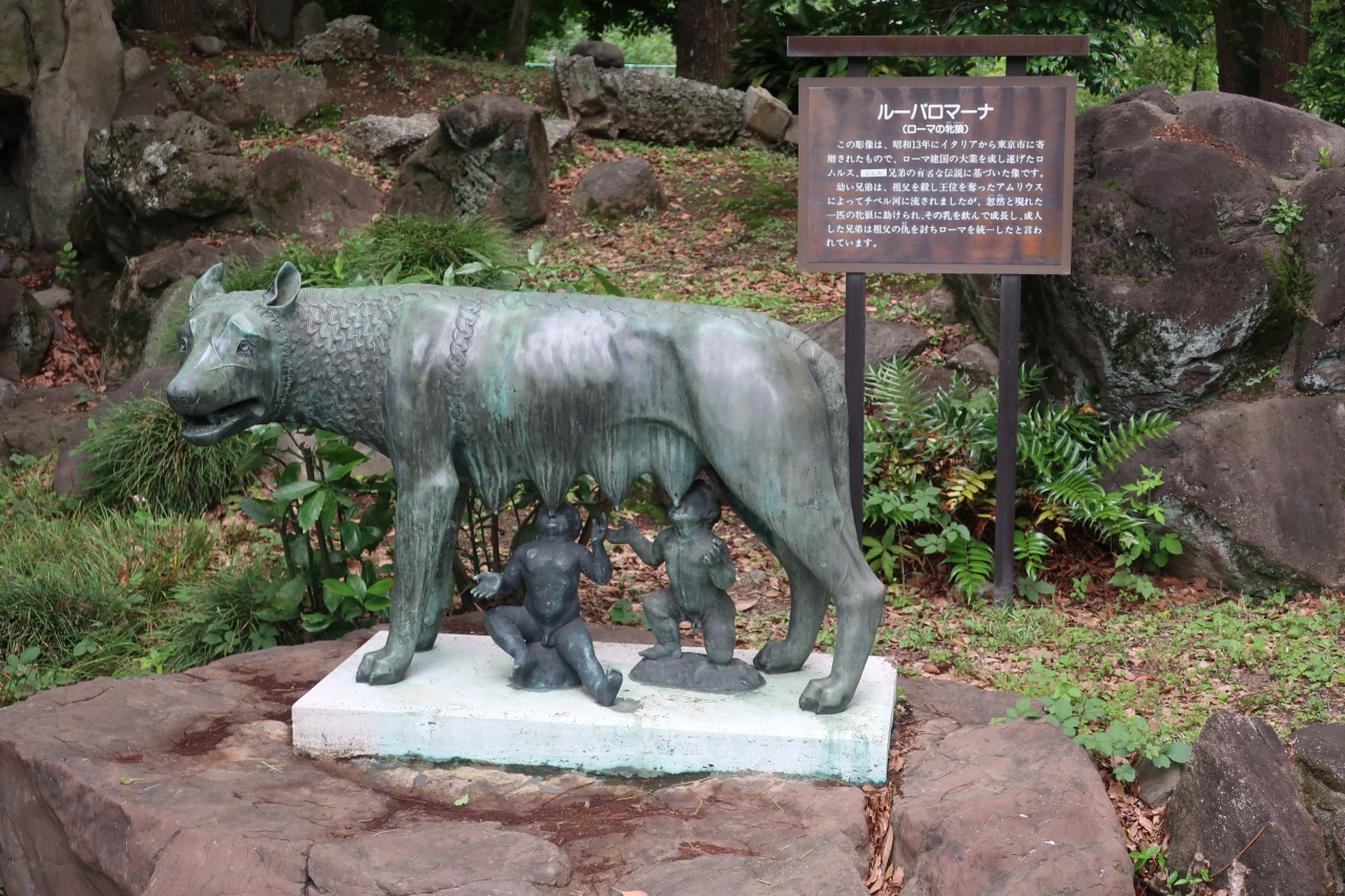 日比谷公園の第一花壇の西側に牝狼のたわわな乳房に、人の乳飲み子が二人、しゃぶりつく雌狼の像があります。この像がルーパ ロマーナ像です。昭和13年3月に日独伊三国同盟締結の前にイタリア大使館から日本に贈られたものです。ローマ建国の神話に因む像はイタリアで見たものと全く同じでしたが、こちらも何故日比谷公園に置かれているのか、誰か教えてください。