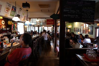 市が尾駅から歩いて12,3分の所にあるレストランです。表通りから住宅街に入った所にありますが、裏手に大きな駐車場があり車で訪れる人が多いです。店内はカウンター席とテーブル席があり店内の装飾はアメリカのレストランの様です。頂いたのはダブルチーズバーガー。チェダーチーズの乗ったパテ、玉ねぎ、トマト、レタスと適度に焼かれたバンズが如何にもアメリカンなバーガーで、ファストフードの物とは段違いに美味しい。店内がちょっとうるさいのが難点ですが、これもアメリカンなんでしょうね。