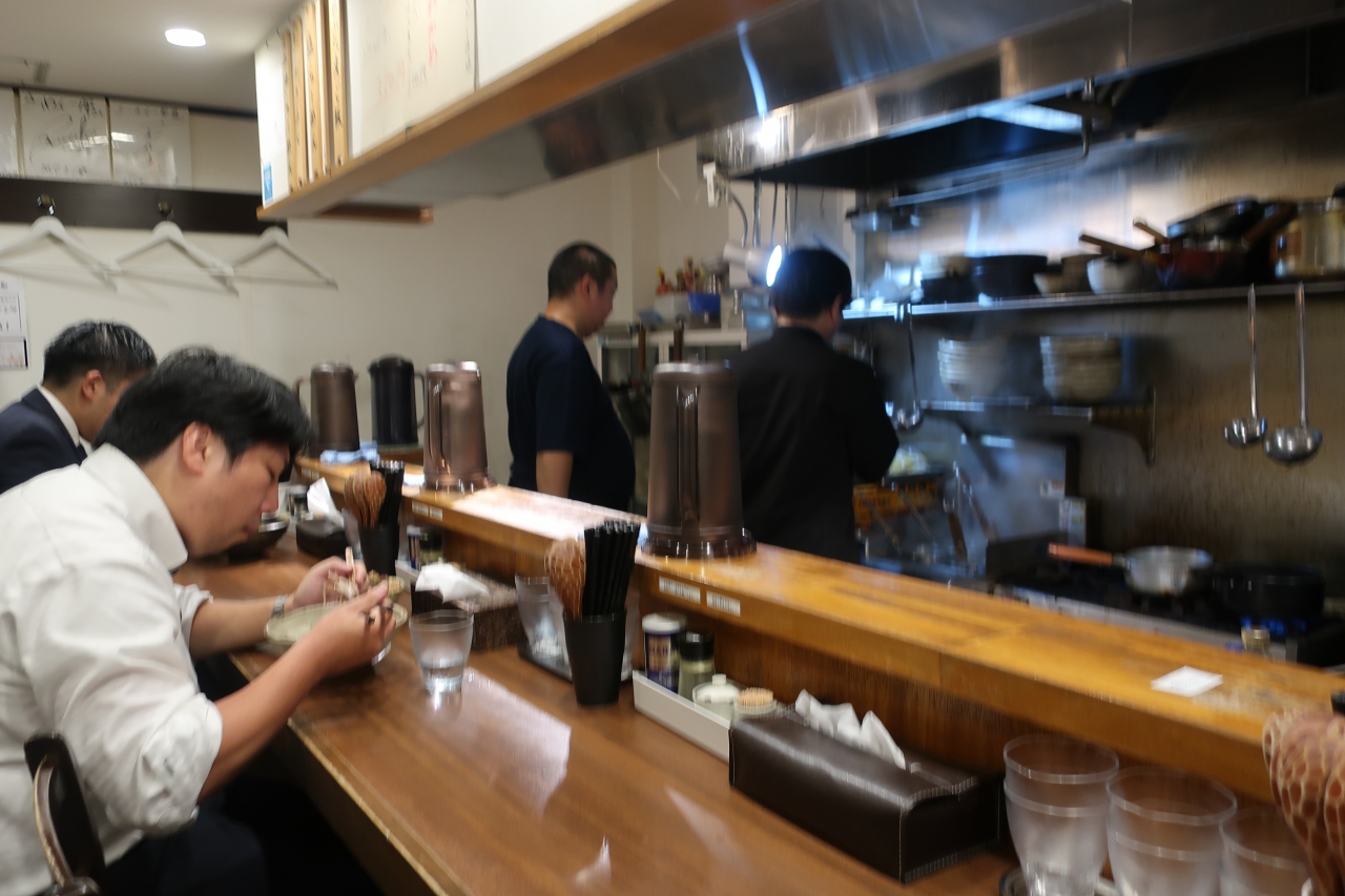 松屋通りの丸の内東映の裏あたりの地下にあるラーメン店です。サラリーマンの多い場所ですが、平日の昼前11時頃行くと並ばずに入れました。店内はカウンター席のみで7,8人しか座れません。頂いたラーメンはあっさり系の醤油ラーメン。シンプルですが、味わいのある味でとっても美味しいです。が、地下の店で窓もなく圧迫感が少しあるのは頂けません。
