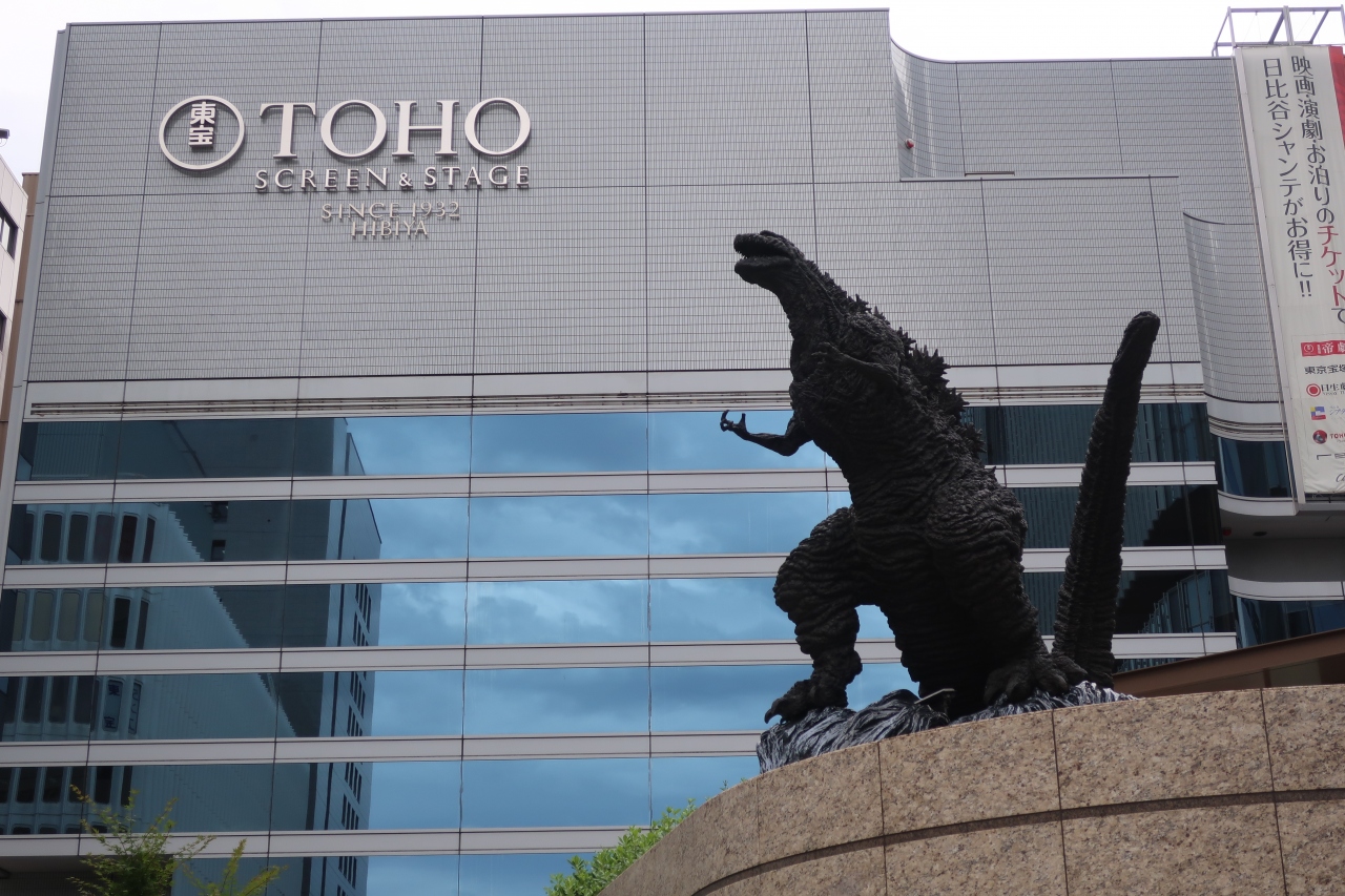 日比谷シャンテ前の広場にゴジラ像があります。新宿のゴジラとは違い、高さ2.5m程のこじんまりとしたゴジラ像ですが、とっても精巧に作られており、リアルです。さすが、東宝の美術が作った像だけあります。このゴジラ像を目当て来ているマニアもおり、日比谷の新名所となっています。