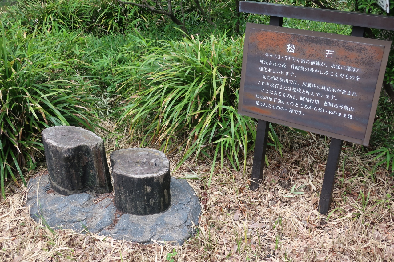 日比谷公園内の第一花壇の北側、公園資料館の近くに丸い石が二つ植え込みの中にあります。これが松石です。北九州の炭田で埋没した植物に珪酸質の液がしみ込み込んだ珪化木が松石です。この松石は福岡の亀山炭鉱から発見されてものだそうです。確かによく見ると年輪があり木が化石化したものでした。