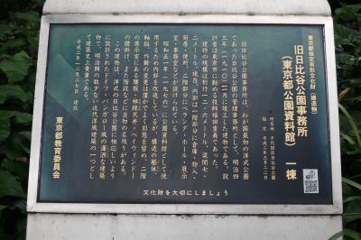 日比谷公園内の第一花壇の北側にバンガローの様な洋館があります。これが東京都公園資料館です。明治43年に日比谷公園の管理事務所として建てられた木造2階建ての洋館ですが、日本人が設計した建物です。公園資料館と言う名前なので、内部を見学できるかお思ったのですが、現在は別の用途で使われている様で外部からしか見学できませんでした。しかし、趣きのある洋館で結構好きな建築です。