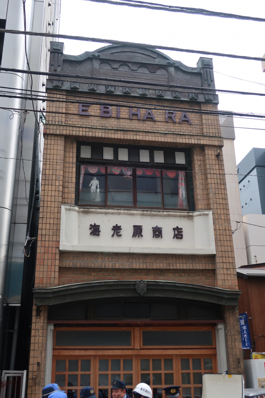 神田須田町の柳原通りに面した看板建築の建物が海老原商店です。昭和3年築の木造三階建ての建物は古着店として建てられたものです。この辺りにあかつて看板建築の建物が数多く残っていたそうですが、現在残るのは海老原商店のみ。古い風情のある建物が壊される中、改修して昔の佇まいを残してくれていることに感謝したい建物です。私のお気に入りの建物の一つです。