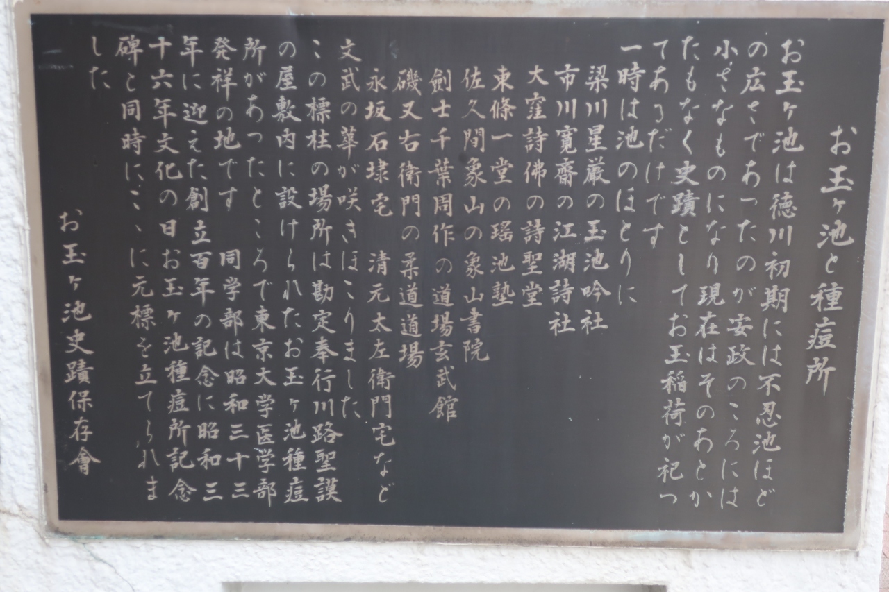 岩本町駅と小伝馬町駅のほぼ中間地点にお玉ヶ池種痘所 (東大医学部発祥の地) があります。この辺りにはかつてお玉ヶ池という池があり、そのほとりに安政5年に蘭学者が種痘所をつくり、それが明治になり東京医学校となり、東大医学部になっていきました。故に東大医学部発祥の地とされています。江戸時代から種痘の研究施設があったことを始めて知りました。街歩きをしているとこの様な知らない歴史をしることが出来面白いです。