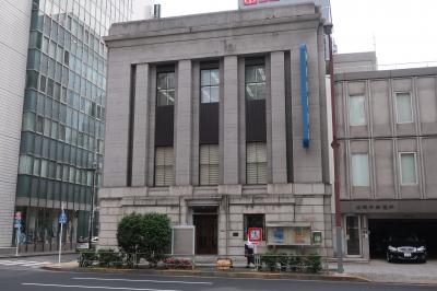 JR神田駅から中央通りを日本橋方面に行った今川橋交差点の先右手に山梨中央銀行東京支店があります。昭和4年に建てられた建物は、基壇部の上に、柱を並べたファサードは姿をしており、正に銀行建築の見本と言って良い建物です。悪く言えば箱みたいにも見えるのですが、お堅い銀行のイメージピッタリです。