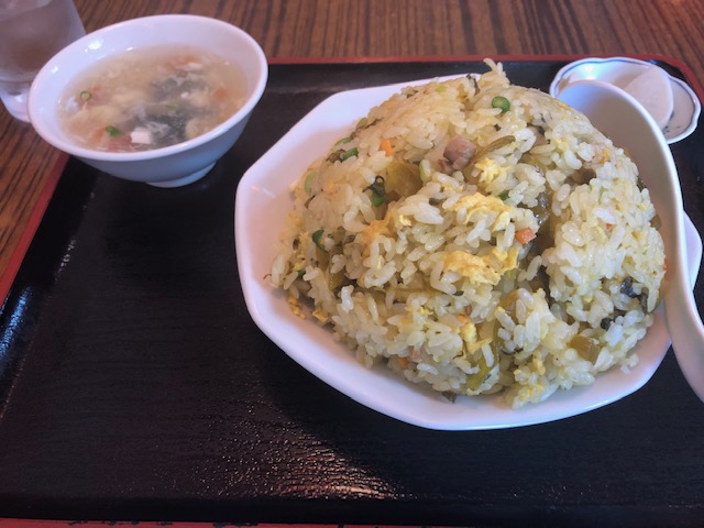長津田駅南口から5,60mの長津田商店街にある中華料理店です。平日の昼2時過ぎに訪れると店内は私を含め3人ととっても空いてました。店内の壁には沢山の本格中華料理のメニューが貼られ、厨房からは中国語での会話が聞こえてくるので期待できると思いました。注文したのはシンプルな高菜チャーハン。食べてみると期待は裏切られ普通か、それ以下の味。付け合わせでてきたスープもあんまり。