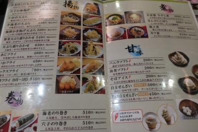 ららぽーと横浜から産業道路を西に600m程行った所にある人気の蕎麦屋さんです。土曜の6時に行くと駐車場はほぼ満杯、店内も4組程待っており人気の程が伺えます。席は座敷席とテーブル席がありますが、通されたのはテーブル席でした。雰囲気は座敷席の方が良いかな?