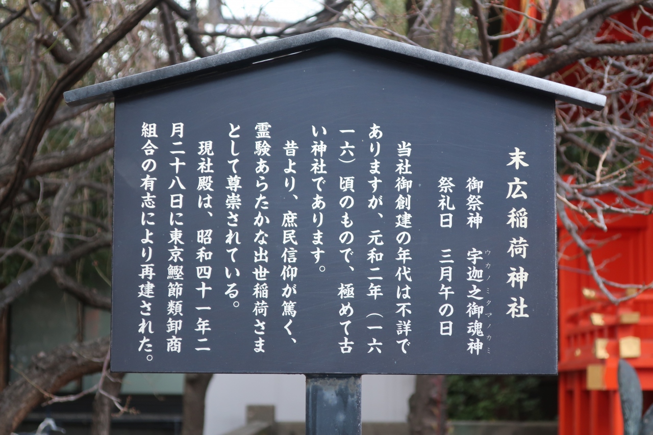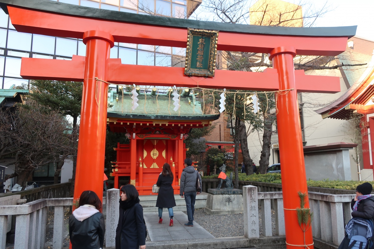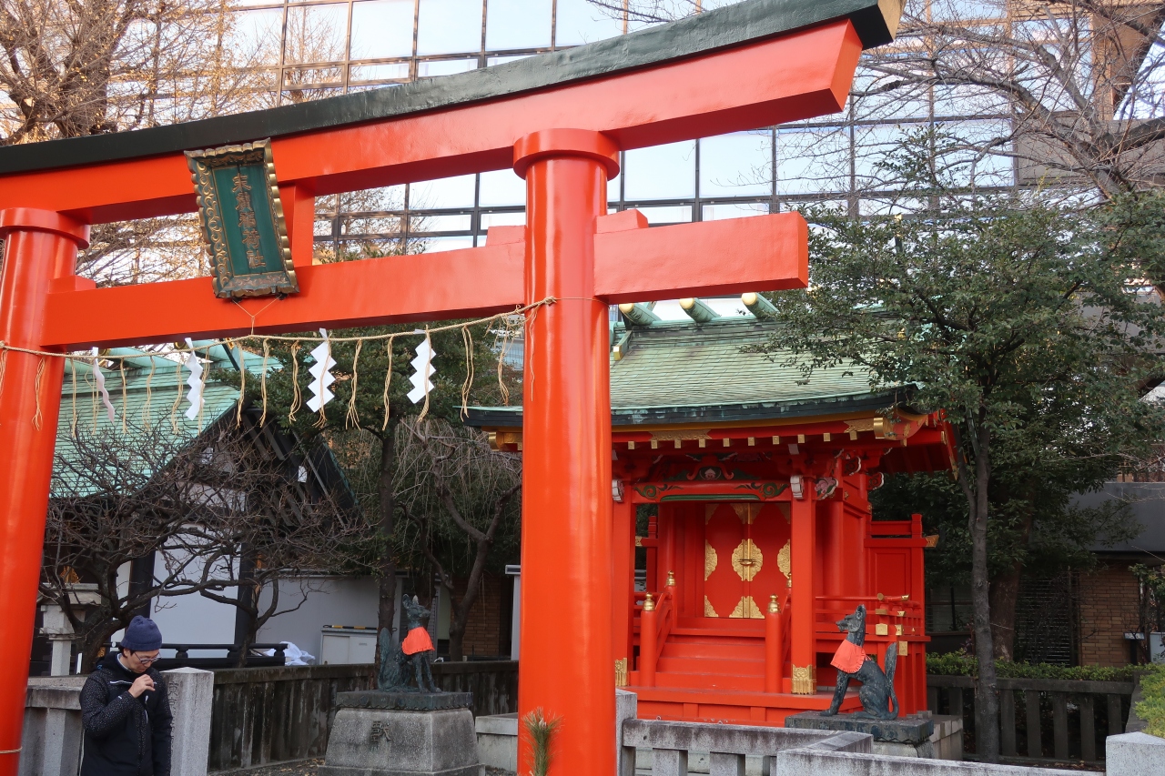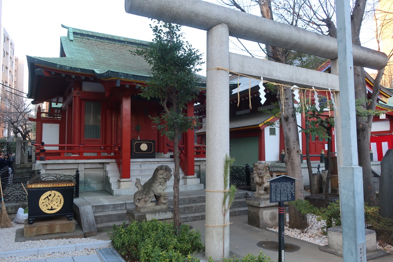 神田明神の御神殿の裏側、裏参道の近くにあるお稲荷さんが末廣稲荷神社です。宇迦之御魂神を祀る神社で、創建は元和2年(1616年)と言われる古い神社です。現在の社殿は昭和に再建された物ですが、出世のパワースポットとして人気です。神田明神には多くの末社がありますがお稲荷さんはここだけです。
