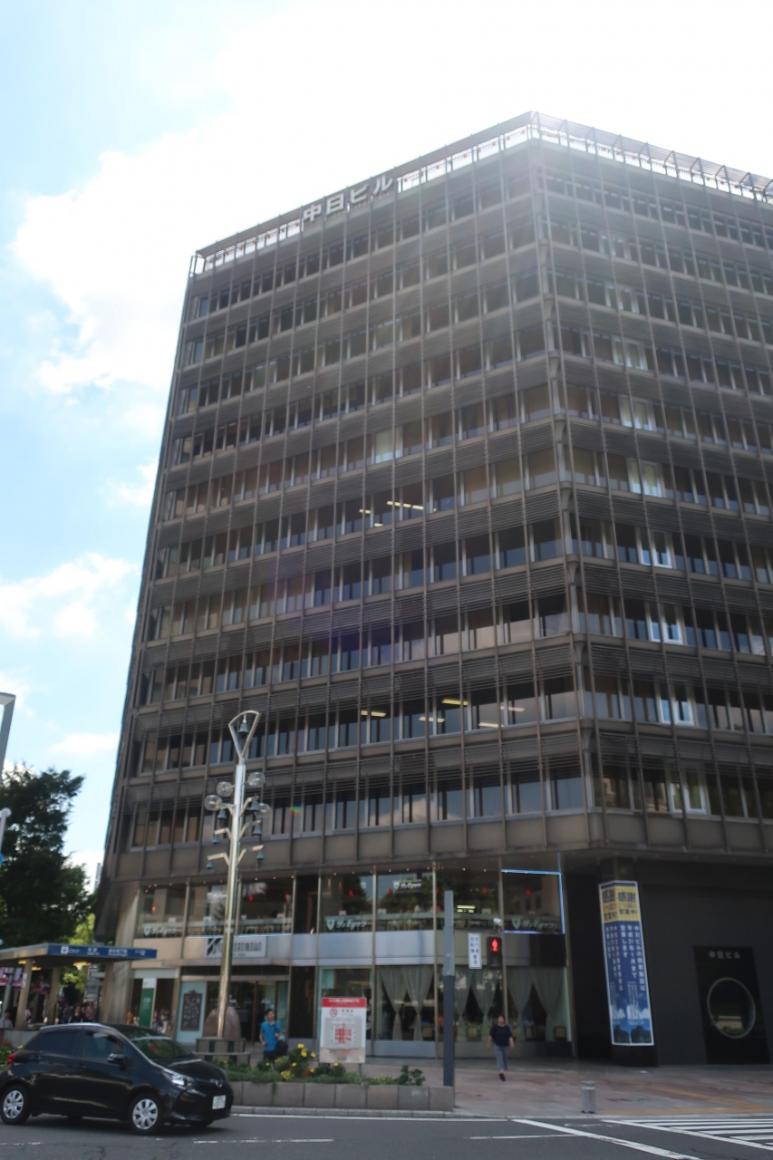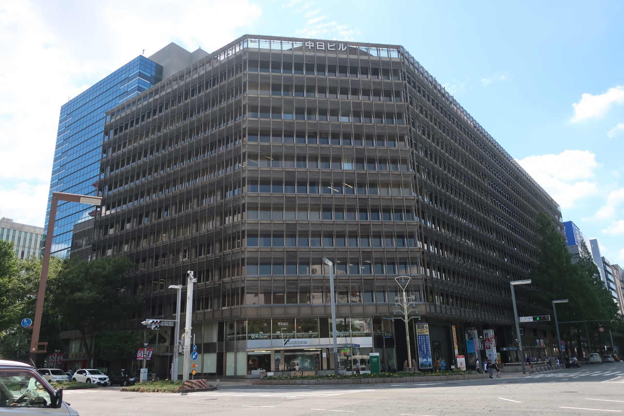 栄のほぼ中心地と言える広小路久屋の角にあるビル。中日ビルと呼ばれていますが、正式には中部日本ビルディングと言います。昭和41年に建てられた建物で、中日ドラゴンズ、ビアガーデン、物産観光センター中日ビルタウンなどが入居しにぎわいのあるビルです。分かり易い建物なので、銀座の和光前の様に待ち合わせの場所としても良く使われます。ところが、残念なことに老朽化から平成31年3月、平成の終わりとともに閉館、建て替えとなります。建物好きには取り壊され前に見納め出来てよかったです。