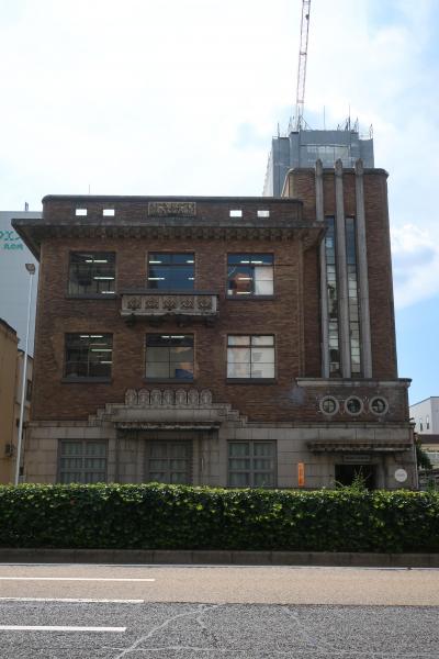 官庁街近くの大津通りの東に面した所に建つ近代洋風建築の建物です。右隣にある愛知県庁大津橋分室と比較すると小ぶりの建物ですが、似た造りで1階は石積み、2,3階はタイル張りの外壁、そして特徴的なのは2,3階の窓脇の螺旋状の飾り柱。現在も現役の社屋として使われているのがうれしいです。