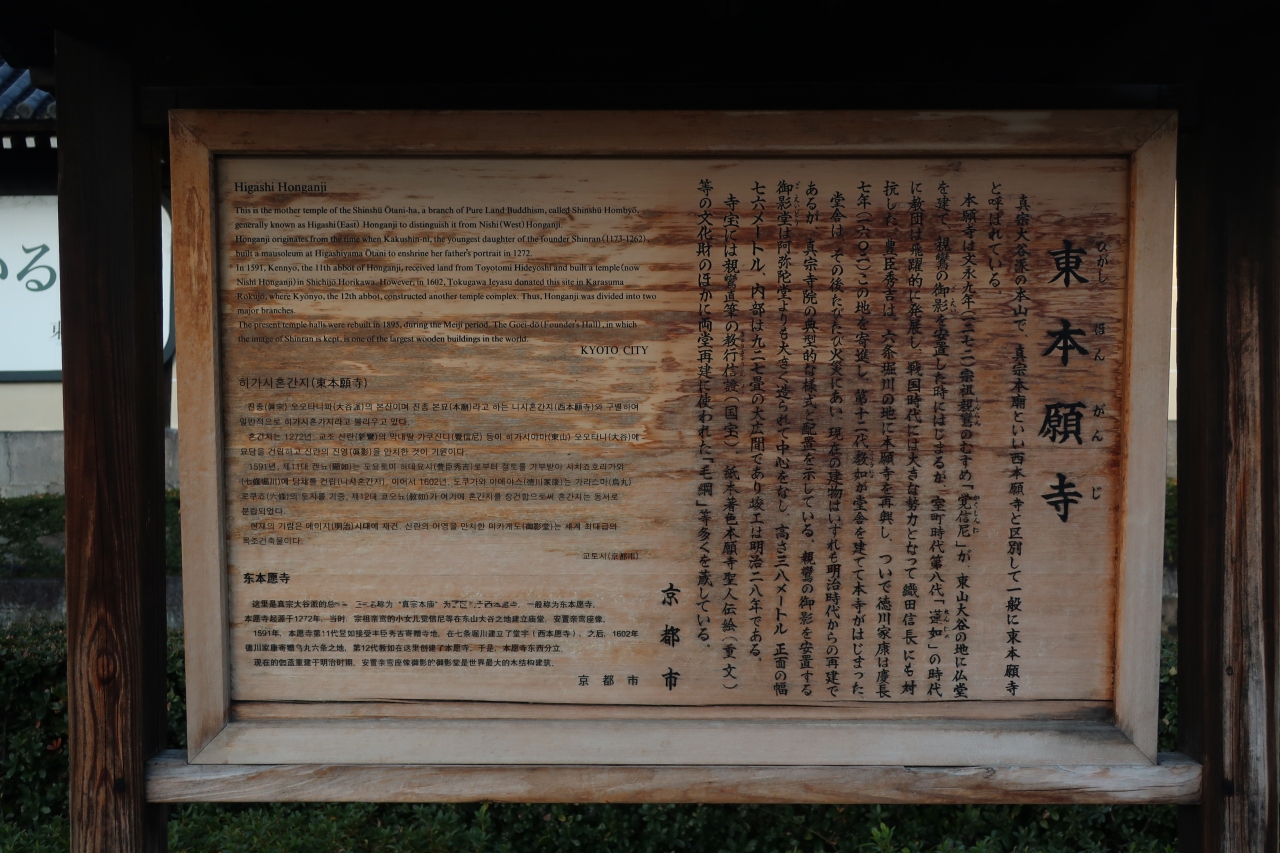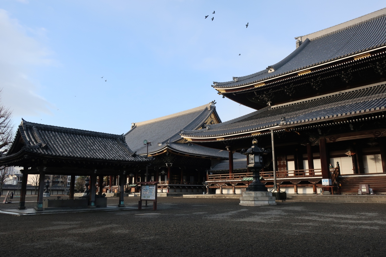 烏丸通り七条の西側にある真宗大谷派の本山が東本願寺です。広い境内の中に荷は御影堂、阿弥陀堂の大きな御堂があります。非常に立派な建物なのですが、すべて明治期の再建されたもので、西本願寺の歴史的な壮大な建物には敵いません。