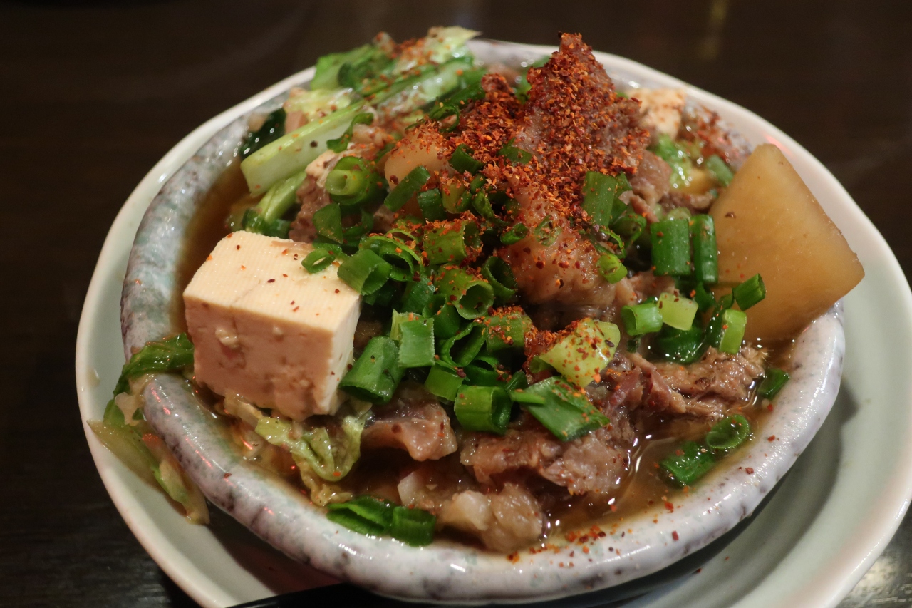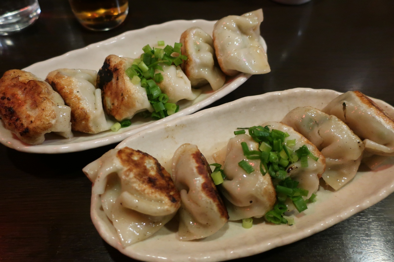 青葉台駅から10分程歩いた桜台商店街にある呑み処です。お店自体はさほど広くはなく、カウンター席10席程、2人掛テーブル席1、そして最奥に8人程座れる板間席が1つです。土曜の18時に行くとほぼ満席でかろうじて空いていたカウンター席に滑り込めました。メニューは店名にもなっている餃子の他、中華風の一品料理、鶏ソバ、炒飯などがあります。青葉餃子は味噌だれで食べる餃子で美味しですが、それよりも美味しかったのがピリ辛の水餃子。これほど水餃子が美味しいと思ったことはありません。また、もう一つに人気メニュー牛筋煮も柔らかく美味。
