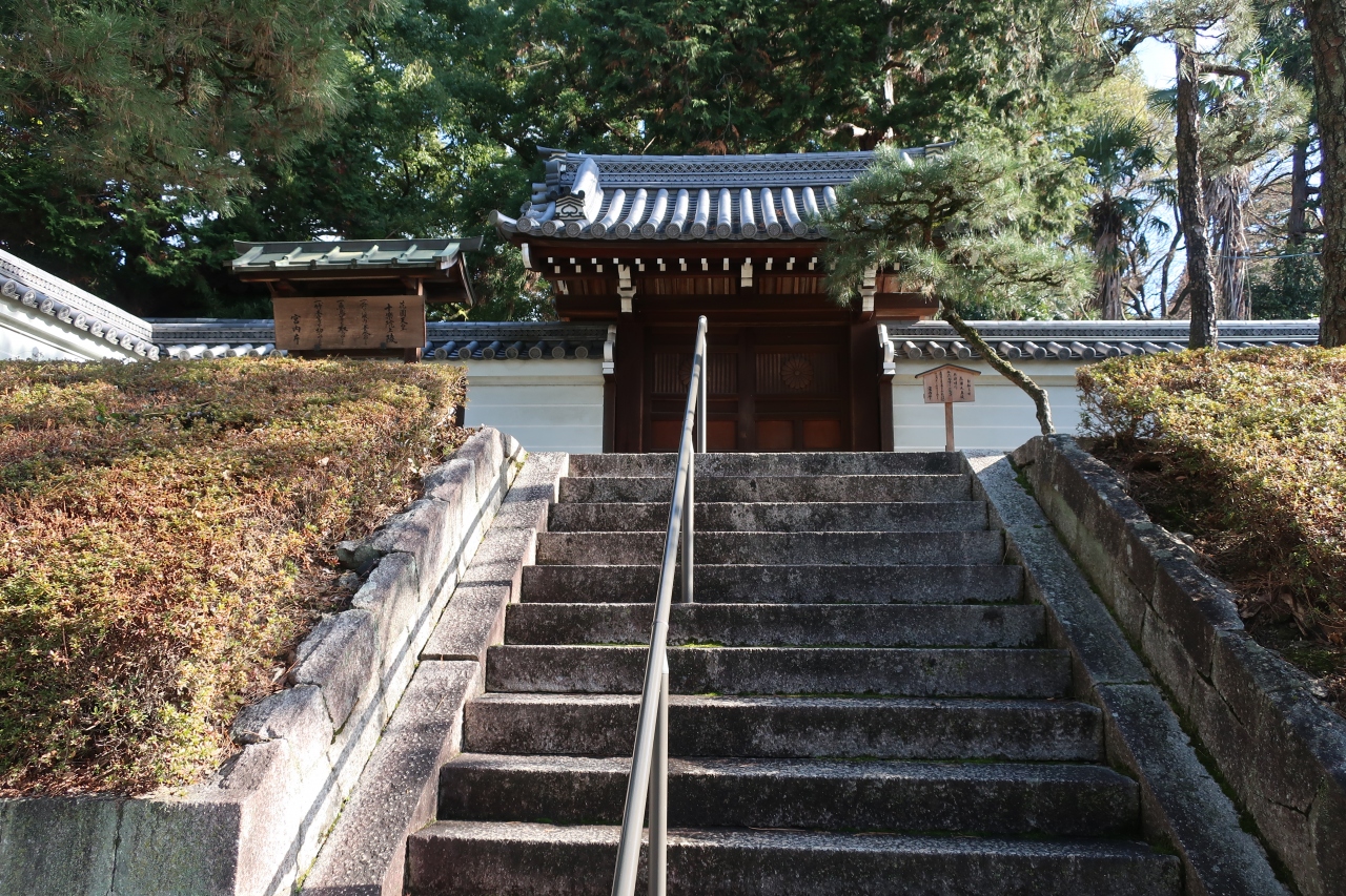 神宮通りを青蓮院門跡から知恩院に行く途中に花園天皇十樂院上陵があります。花園天皇は南北朝に割れる一代前の天皇です。何回も神宮通りは歩いてことがありますが、こんな場所に御陵があるとはこれまで気づきませんでした。石段を上がると菊の御紋の扉がある門があり、その先に御陵があります。しかし、土日祝は閉門されており、中まで入ることは出来ませんでした。見学される方は注意してください。