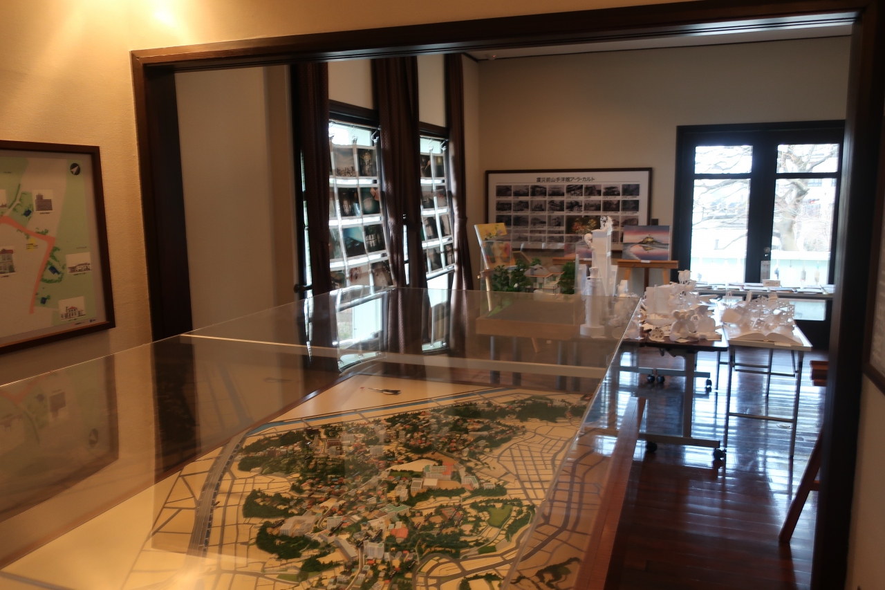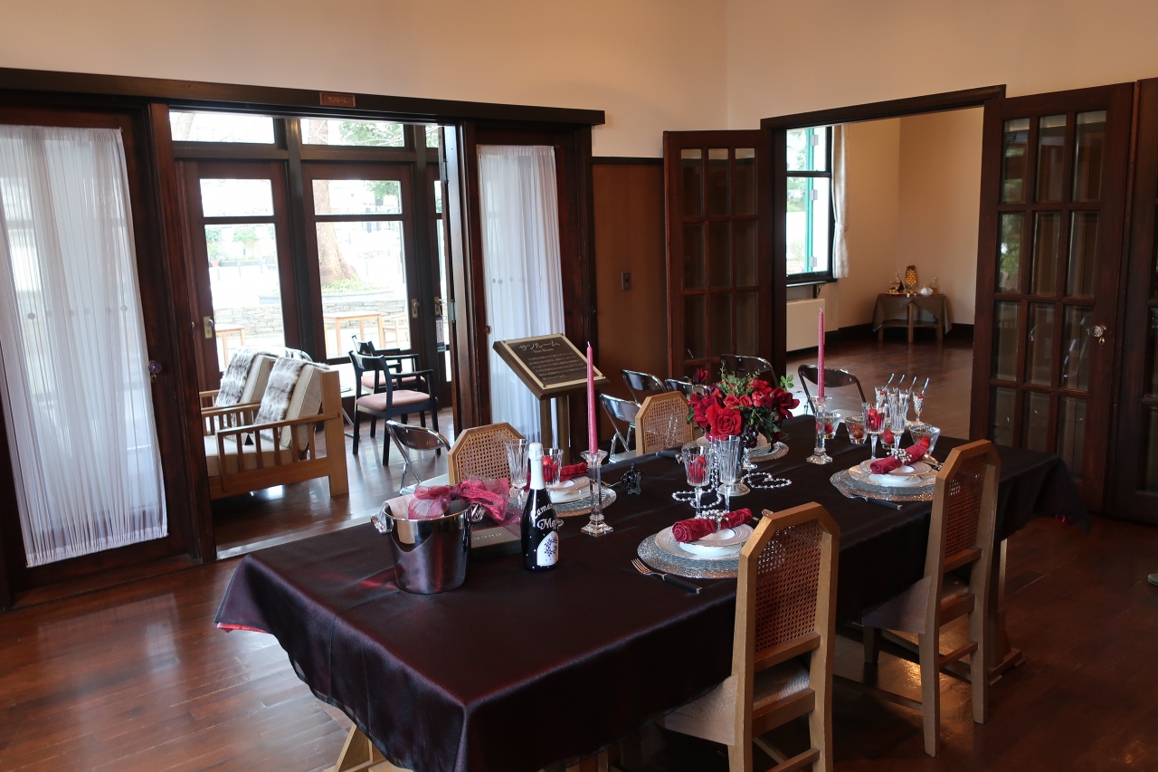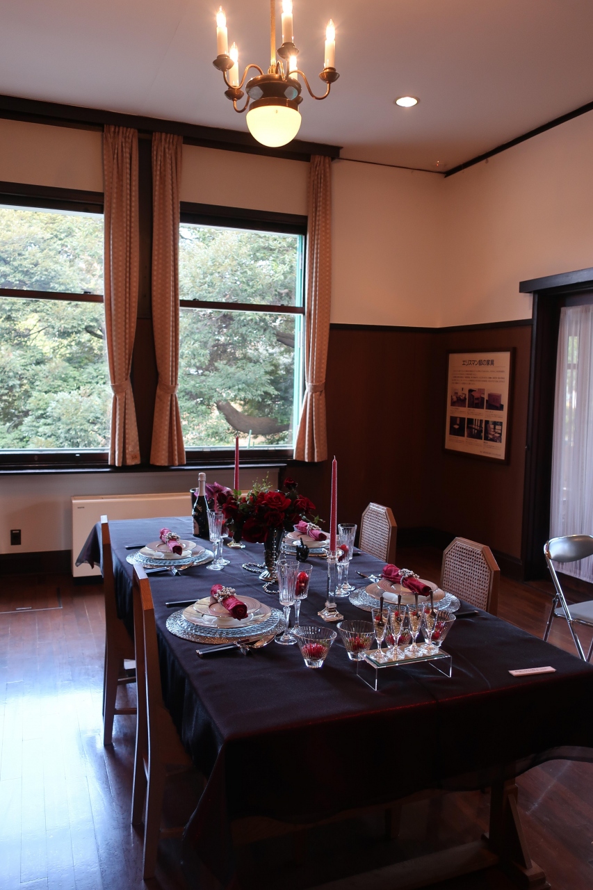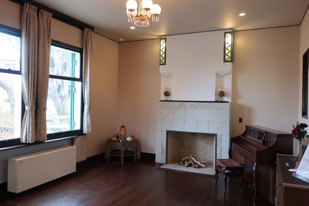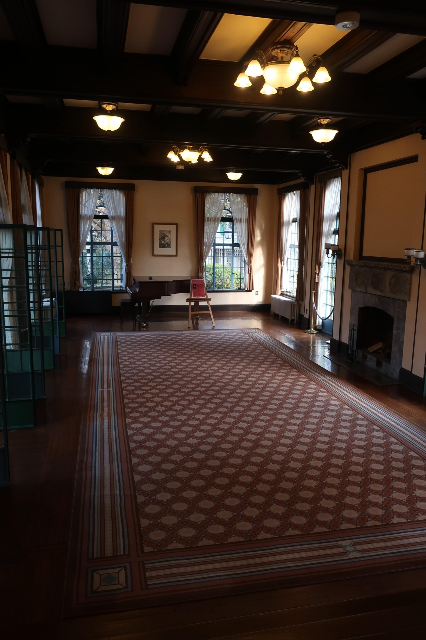 大正15年にスイス人貿易商エリスマンの私邸として建てられた洋館は暖炉のある応接室、食堂、サンルームがあり、当時と同じ家具が使われています。2階では山手の洋館の資料が展示され、震災前の洋館の写真が面白かったです。