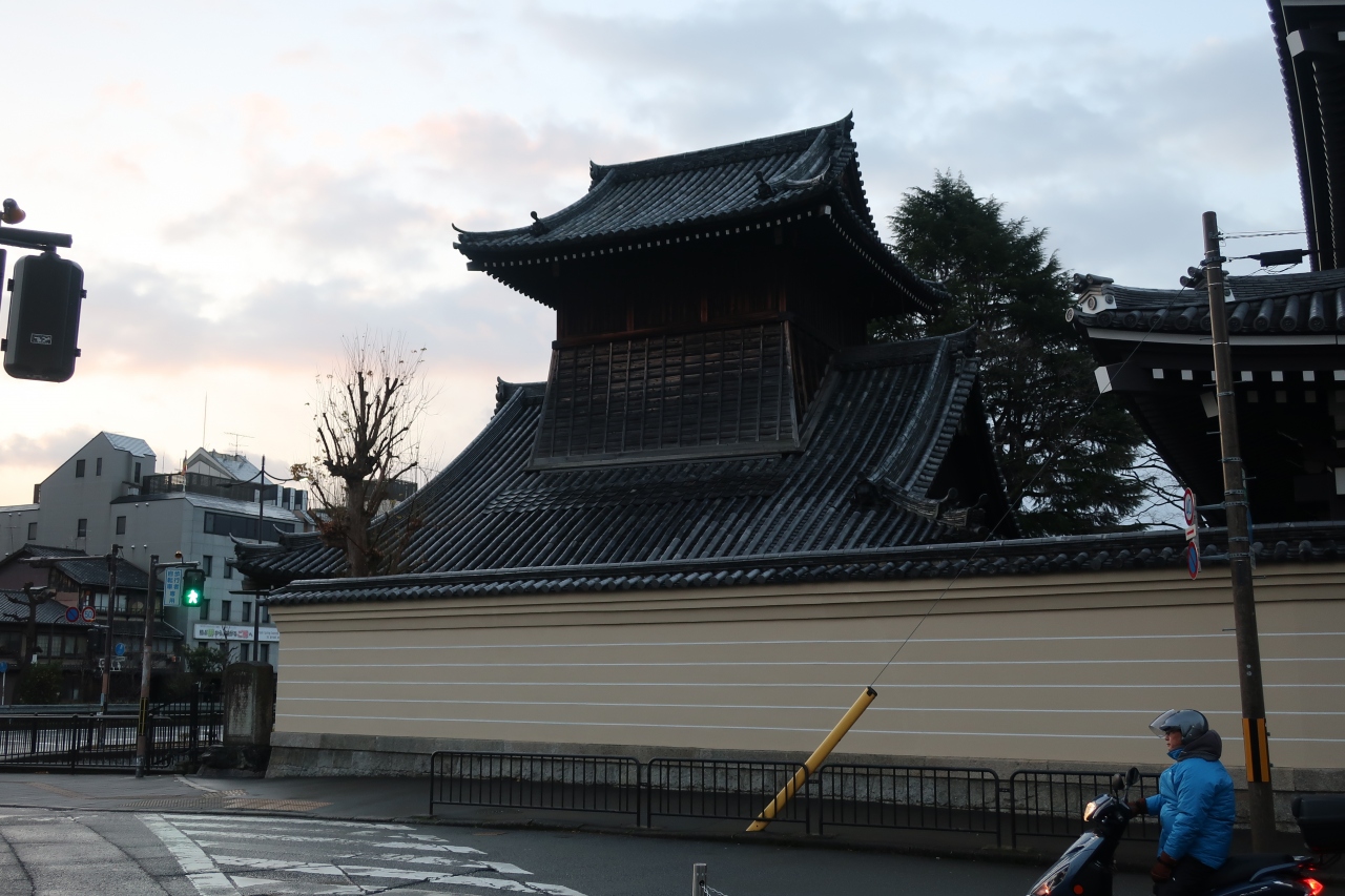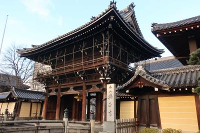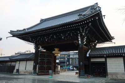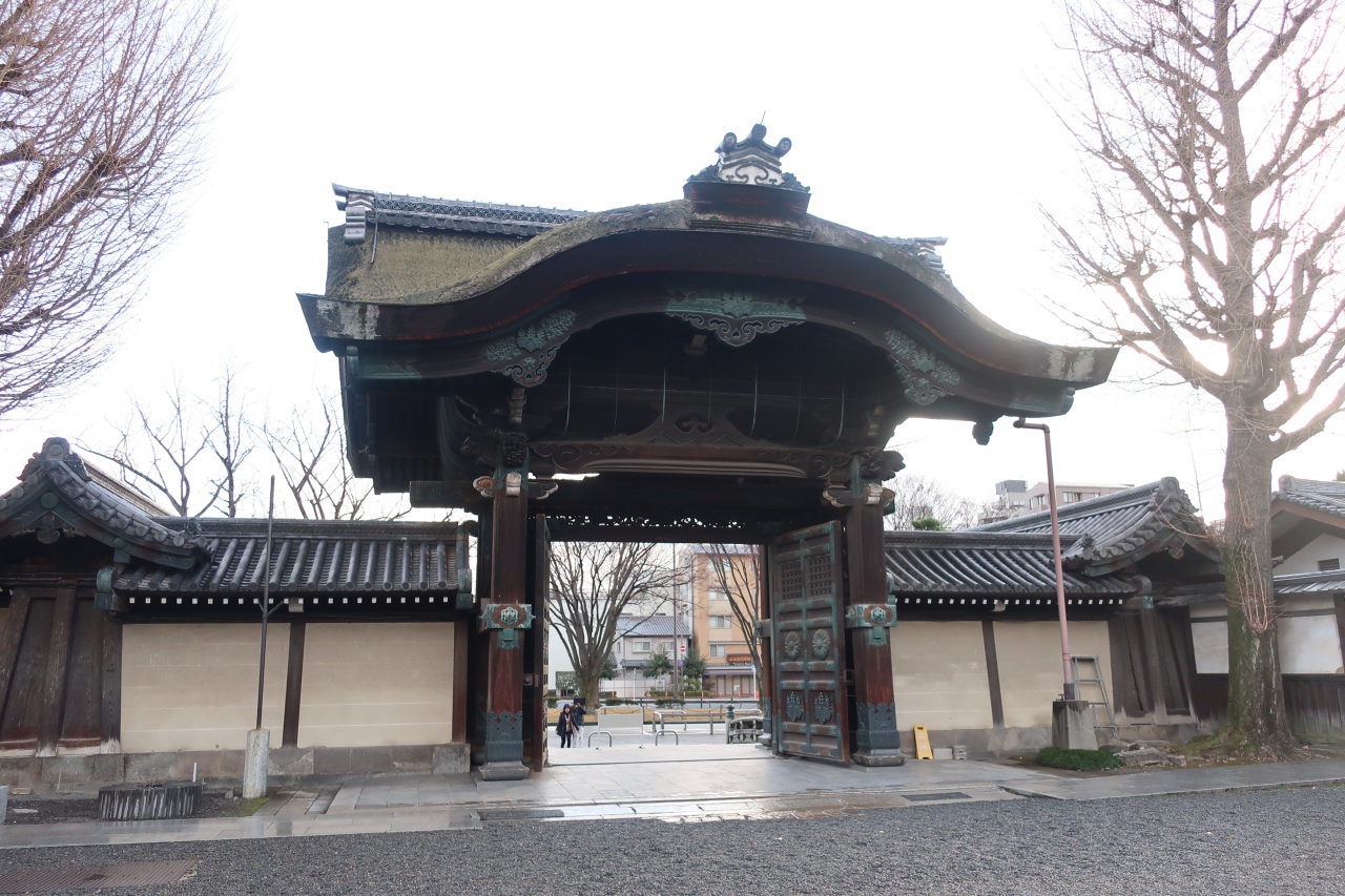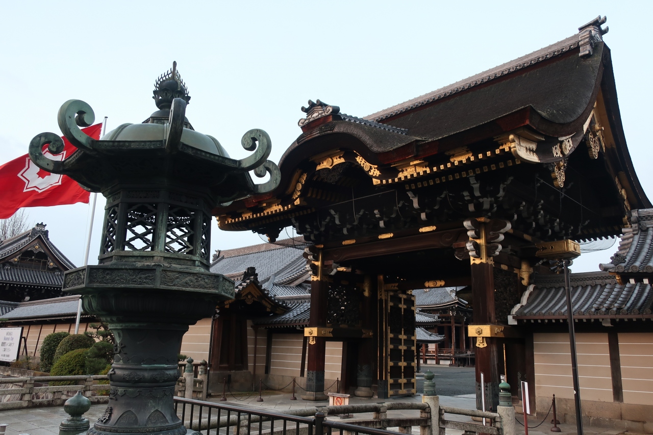 西本願寺の堀川通り沿い南側にある御影堂の正面にある門です。西本願寺の中では一番重厚感のある門です。この門の正面から中を見通すと白い目隠し塀の上に御影堂の大屋根を見ることができます。
