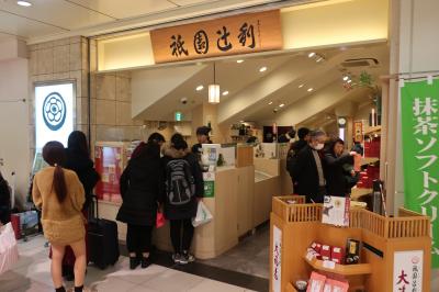 京都駅の新幹線口のある八条口にある宇治茶の辻利があります。四条通りにある本店はいつも観光客で一杯で身動き取れない程ですが、こちらでは売り場は小さいですが、基本的に同じ商品を買うことができます。また混んでません。新幹線で京都から帰る前に京土産として辻利の商品が買えるので便利。また、奥にはイートインがあり、抹茶ソフト等を食べられるのも嬉しい所。