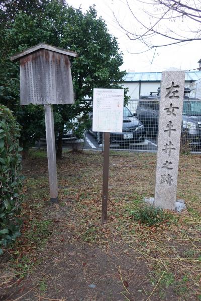 西本願寺から堀川通りを上がった東急ホテルの近くに左女牛井之跡の石碑が立てられています。平安時代より京の名水として知られた井戸の一つであることで知られた井戸です。そして、この地にはかつて源氏堀川館があり、左女牛井の水が館に引かれていました。義経、静御前もこの井戸の水を飲んでいたのでしょう。また室町時代には茶人 村田珠光も愛用した井です。