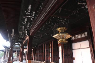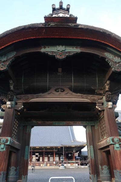 西本願寺の書院の南側に絢爛豪華な装飾が見事な唐門があります。京都の三大唐門の一つに数えられますが、豊国神社の唐門と比較してもこちらの方がより見事でした。麒麟や獅子等の精細な彫刻は色彩も豊かで日暮門と呼ばれるのも分かる気がします。表からも裏からも見ることをお薦めします。今年6月から唐門の修復工事が始まるそうで修理が始まる前に見られて良かったです。また、修復後は更に絢爛豪華に蘇ったら、再度見に来たいと思います。