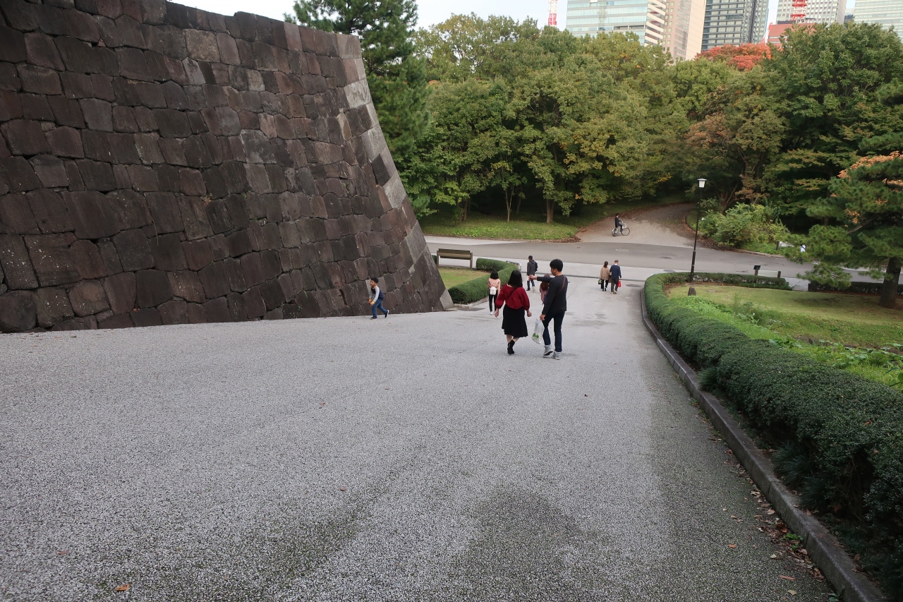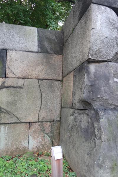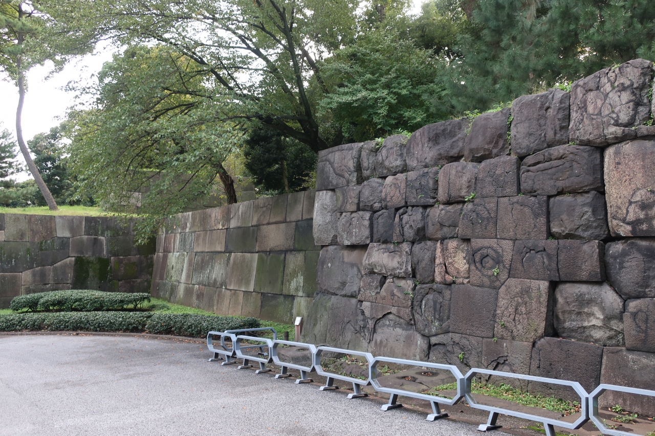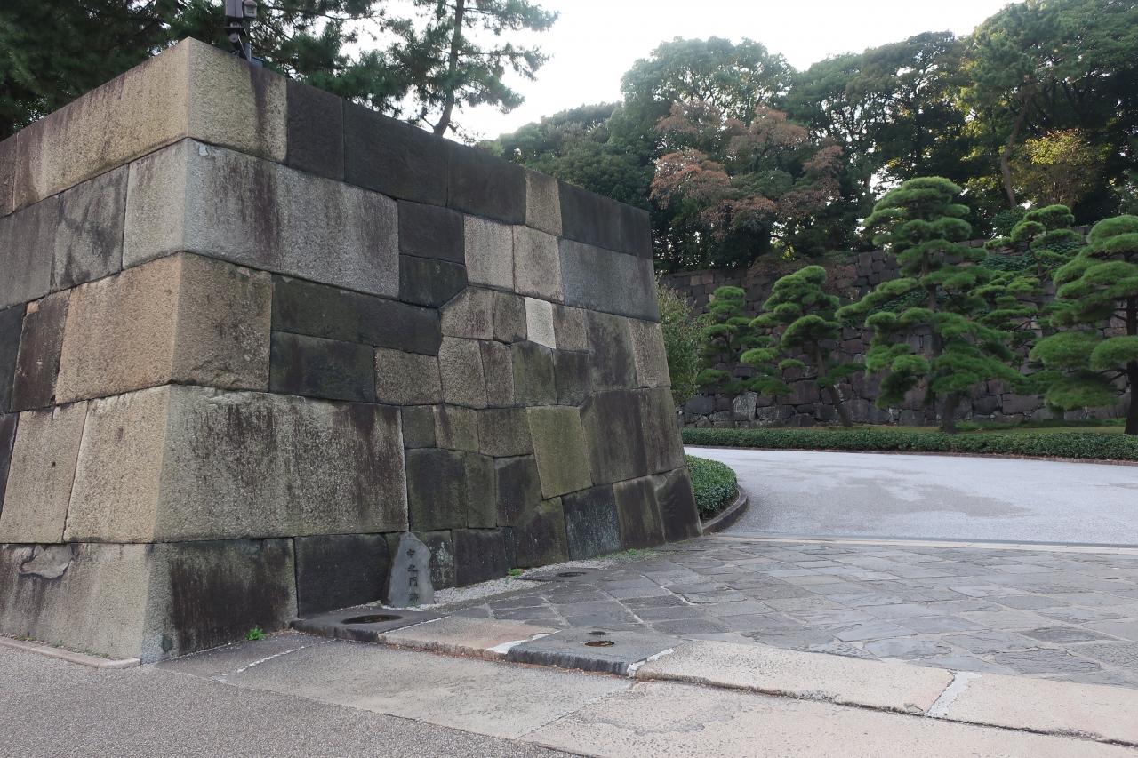 旧江戸城の大手門から本丸に登城する際に通った最後の門が中雀門です。1863年の本丸火災で石垣の上に建てられていた高麗門と渡櫓門は焼失し、現在は大きな石で組まれた石垣が残るのみです。しかし、大きな矩形の石が指も入らない程、きっちりと積み重ねられた中雀門は圧巻です。火災時の熱で、石垣の表面が黒ずんで劣化しているのも歴史の痕跡として見る価値ありです。