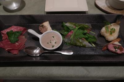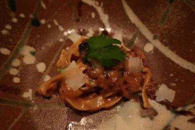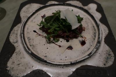 あざみ野駅から徒歩10分程にある複合商業施設 三規庭の2階にあるイタリア料理店です。夕食で利用しました。店内は厨房が見える大きなテーブル席1つと普通のテーブル席が4つとあまり大きな店ではありません。メニューを見て驚いたのはコース料理だけしかなく、アラカルトメニューはありません。頂いたのは前菜、イカ墨を織り込んだタラバガニのタリオリーニ、赤ワイン煮込み羊のフェトチーネ、イベリコ豚のグリル、デザートで4900円のCコース。どれも美味しいのですが、ちょっと、物足りなかったです。