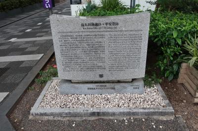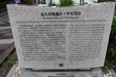 烏丸御池交差点の北東角の歩道の植え込みの一角に烏丸御池遺跡 ・ 平安京跡の石碑がある。この交差点付近はかつて平安京の中心的な場所であり、また縄文、弥生等の集落があった場所で、地下鉄駅には出土した遺物が展示もされています。