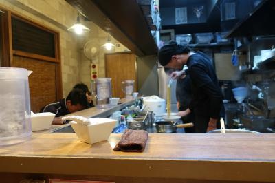 京王堀之内駅近くの多摩ニュータウン通り沿いあるラーメン店です。店内はL字型のカウンターに8席しかなありません。土曜の20時過ぎに行くと駐車場に12人程が並び待つ状態。結局20分以上待たされました。客席が少ない分回転も悪いです。