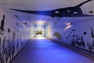 名古屋駅から少し離れたルーセントタワーと名古屋駅地下街を結ぶ約300mの地下道です。ルーセントアベニューの所々にサバンナや海をイメージしたキャラクターが描かれ、場所によっては光の演出が行われているお洒落な地下道です。