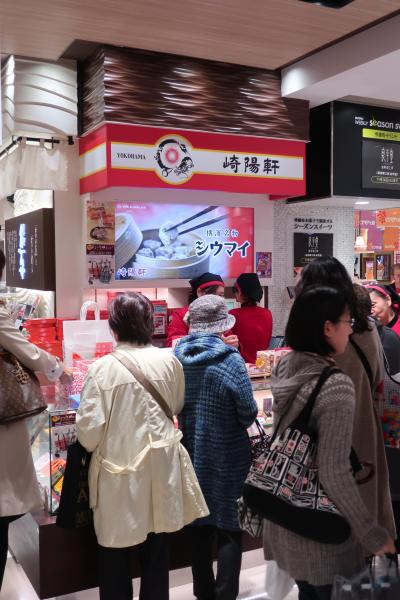 東京大丸の地下1階にある「美味しいシュウマイ」崎陽軒のお店です。店舗自体は1畳程の広さですが、真空パックではない焼売は関東地区でしか買えないので、東京駅から列車に乗る人が入れ替わらりシュウマイを買って行きます。関西で言ったら蓬莱の豚まんみたいですね。