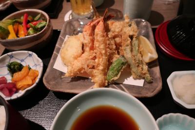 頂いたのは海老天丼と天ぷら午前(桃)。海老天丼は海老3、キス1、茄子、椎茸の天ぷらの乗った天丼、赤だし、サラダ漬物。カリッと揚がった上質な天丼と、程よい出汁のきいたタレがたまりません。また来たいお店です。- 旅行時期