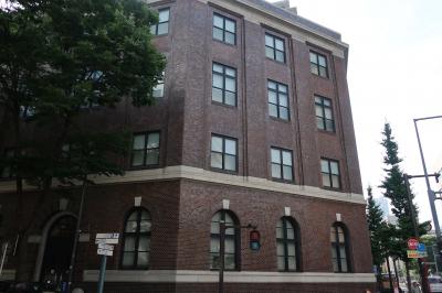開港資料館から日本大通りを横浜公園へ歩いて行くと湊郵便局前交差点の角に4階までがレトロな近代建築、その上に乗る形で12階だてのビルがあります。これが横浜情報文化センター(旧横浜商工奨励館)です。4階までをなす旧横浜商工奨励館は昭和4年に建てられ、表面は白い花崗岩張りの鉄筋コンクリート製。角が丸まっていたり、4階部の窓がアーチ型等アールデコ調のとてもセンスの良い建物。ジャズが似合いそうな雰囲気です。