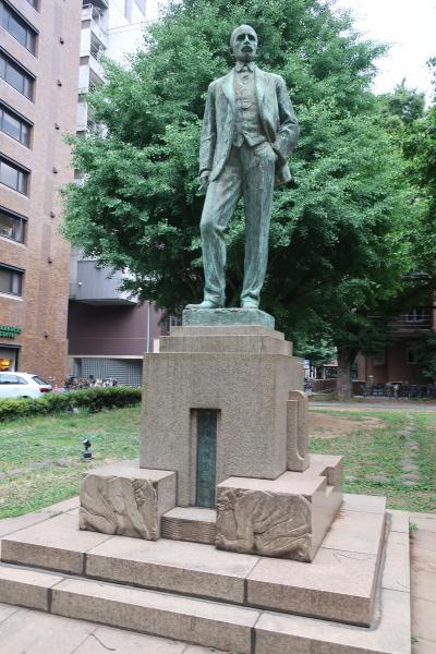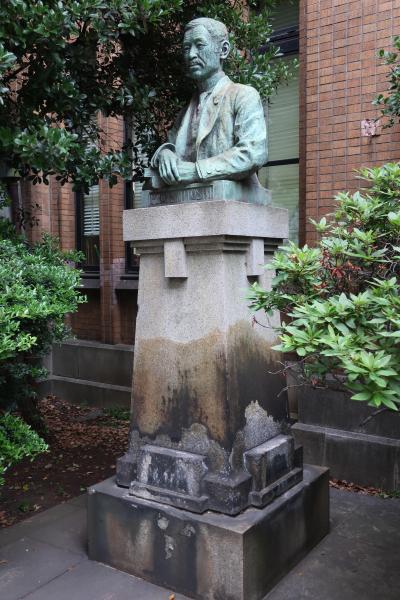 東大 本郷キャンパスには多くの銅像・胸像がありますが、チャールズウエスト像もその一つです。東大正門を入り左手に50m程行った工学部11号館の近くにあります。
