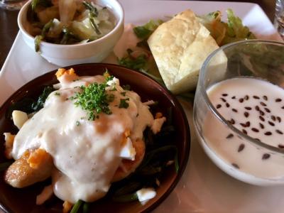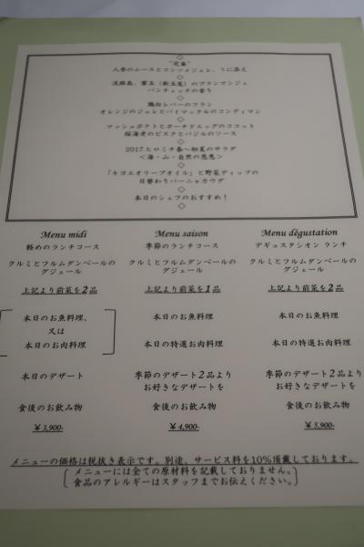 恵比寿ガーデンプレイスからアメリカ橋を渡り左に行ったところにあるミシュラン一つ星を得た小さなフレンチレストランです。座席は5席しかありません。通されたのは奥の席でしたが、竹の植えられた窓側の方が明るく雰囲気が良いです。頂いたのは選べる前菜2品+魚+肉料理のコース。全部頂くと結構ボリューミー。味はとても美味しいですが、盛り付けは女子的にはもっと華やかな方がうれしい所。ガッツリ食べたいときはお薦めですが、気軽に行ける店ではありません。予約も必要です。