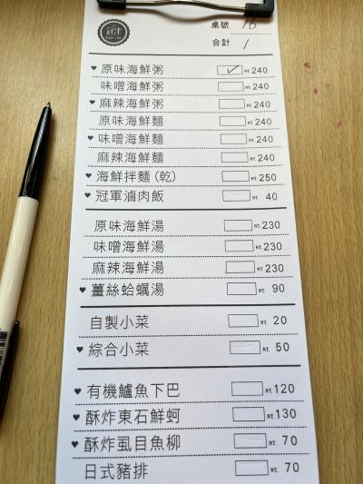 海鮮麺も人気のようだぎ、店の名前の通り原味海鮮粥を注文。原味はオリジナルと言うこと。