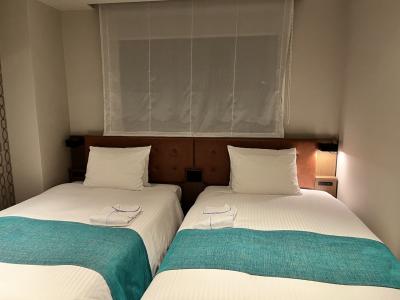 ツインルームに宿泊。ベッドは標準サイズであるが、寝心地の良いベッドであった。また大き目のてーびすは2名での仕事が可能なサイズで電源等もしっかりしており、部屋での仕事が非常にしやすかった。