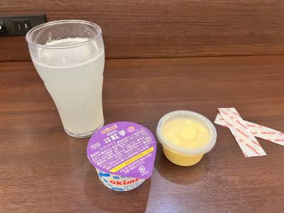 23時までソフトドリンク、アイスクリームが無料、アイスクリームは沖縄明治の紅芋アイスがあり、コンビニで買わずとも沖縄アイスが楽しめた。