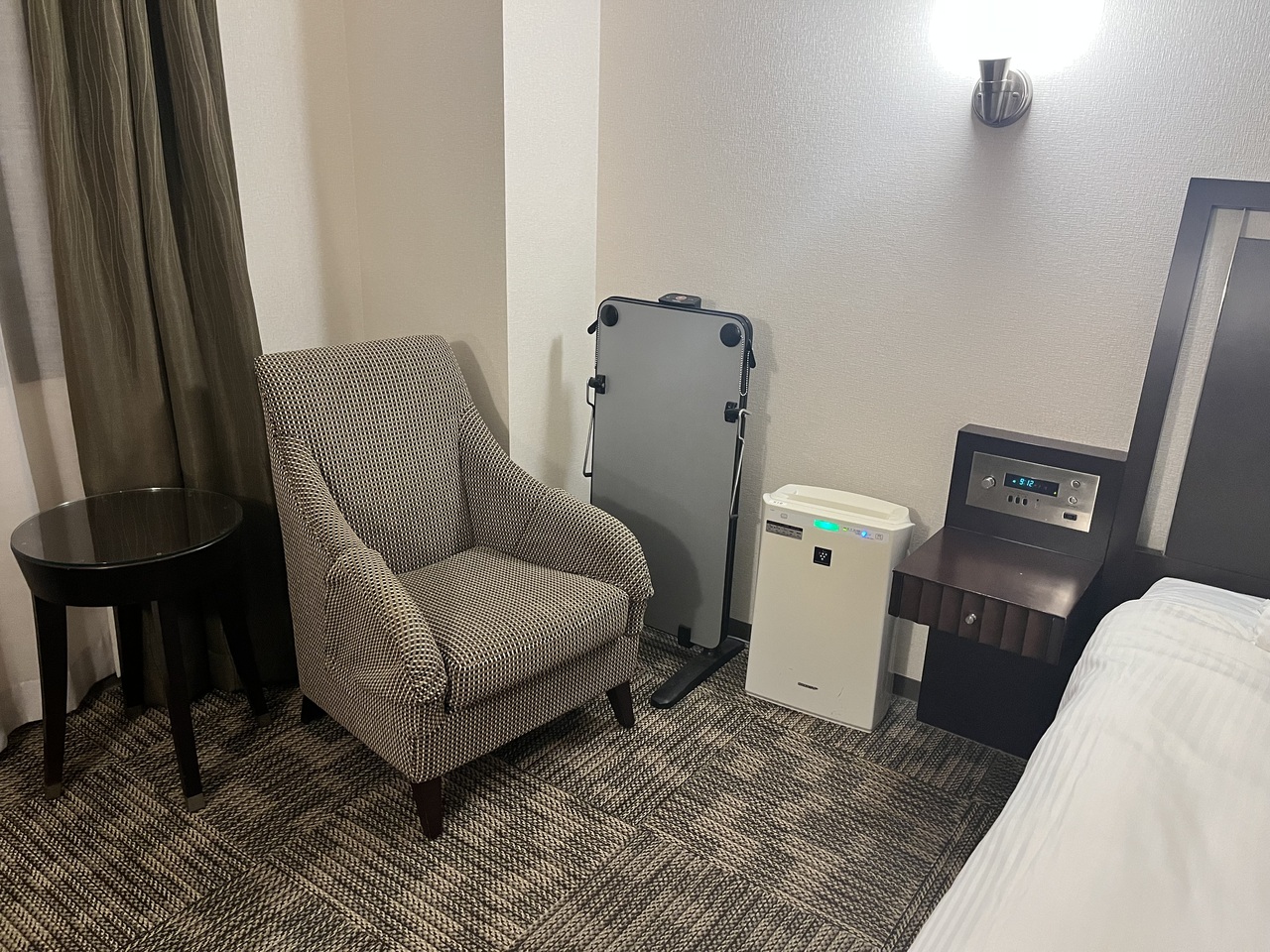 一応ビジネスホテルの分類だが、チェーンのビジネスホテルに比べ部屋は広めで快適。各部屋には空気清浄機、ズボンプレッサーが置いてあるのも嬉しい。