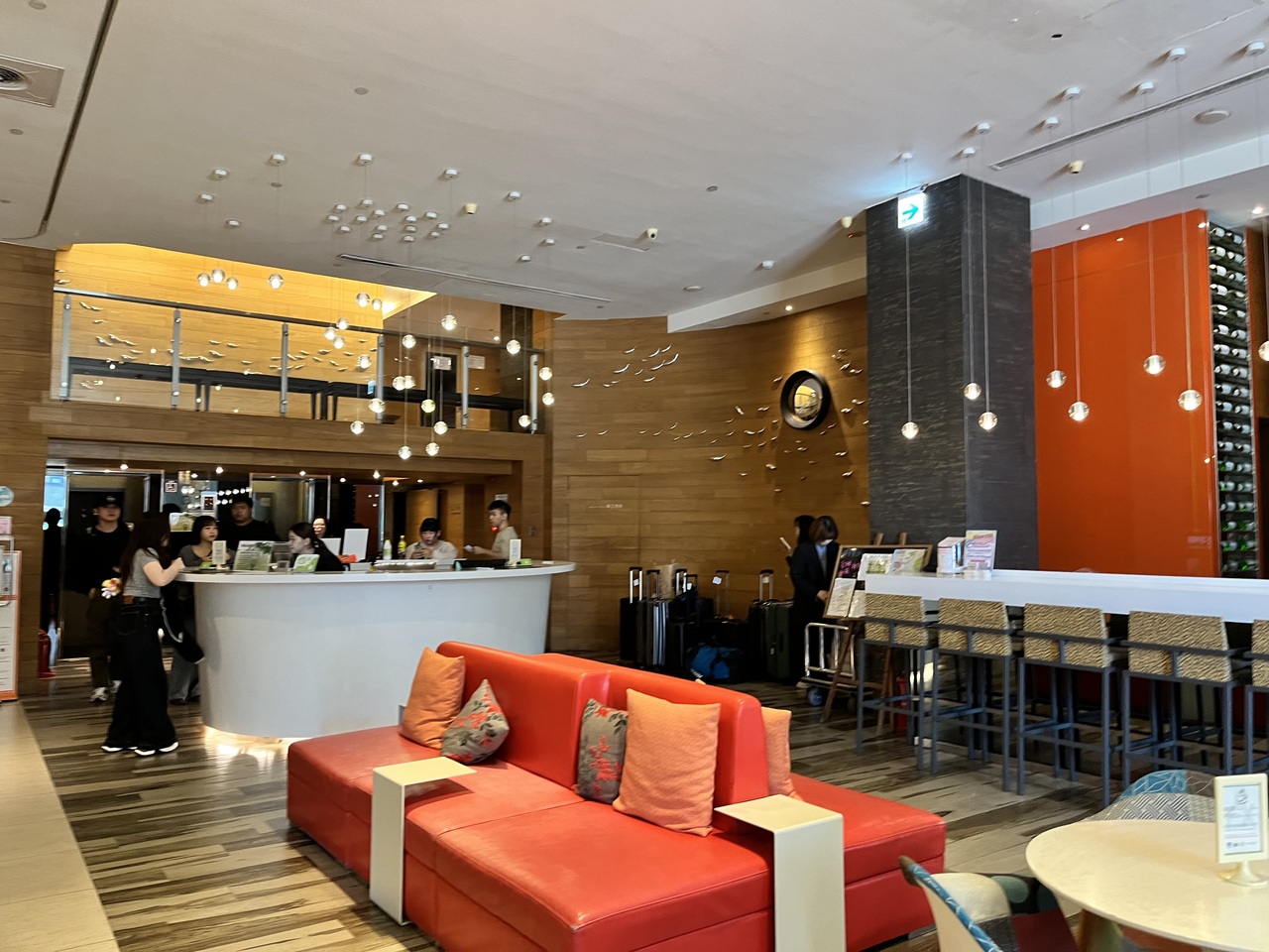 東協廣場はアセアン広場とも言われ、タイ、ベトナム、インドネシア等東南アジアの店が多くあり「台中のリトル東南アジア」とも言われているため、普段の台湾とは少し違った感がある。一方で4階のフロントは最近の台湾らしいアートを多用したロビー、仕事もできるスペース、ジム、カフェなどがある。