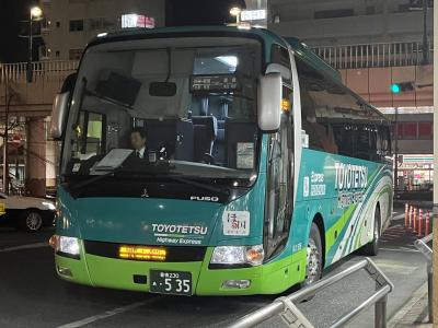 西武池袋線練馬駅より三河田原駅まで夜行高速バス「ほの国号」に乗車。