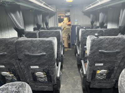 車内は4列シートだが、トイレ、フットレスト、毛布あり。窓側に座った場合、夜中のトイレは少々厳しいが。