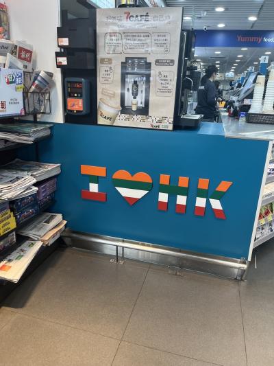 到着口を出て左側にあります。香港でのセブンイレブンとしては比較的広い店舗ではあるが、大型のスーツケースを入れるのはタブーのようで入口に置いている人が多い。