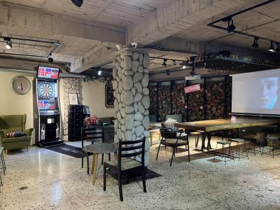 ここの魅力は地下のフリースペース。広い部屋にはテーブルやソファーがあって、ゆっくりしたりPCを使うにはこちらが便利。