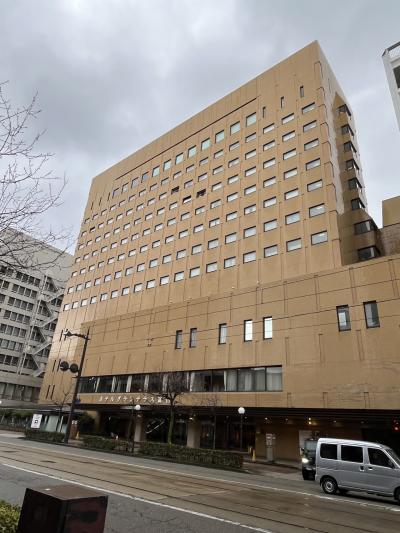 JR富山駅から徒歩5分強の所にあります(ホテルのHPでは7分と表記)。目の前に路面電車の停留所(電気ビル前)があり、街中側の部屋からは路面電車が見える。