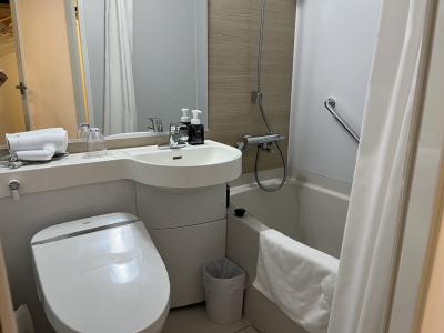 客室は一般的なビジネスホテルタイプ。個性は無いが寝るには充分。バスルームも福岡のホテルでよく見かける節水型のシャワーだが、水力が強く気にならない。