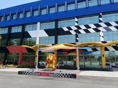 外観は鈴鹿賽道樂園のライセンス先である鈴鹿サーキットを模したデザイン。玄関前にはキャラクターと思われるライオンが鎮座。1階ロビーにはレーシングカーのモックアップらしきものが展示されている。