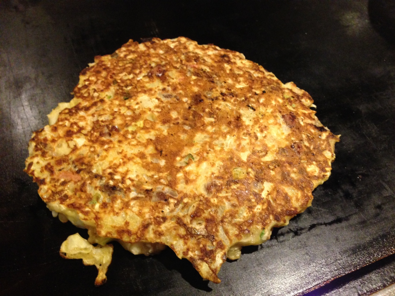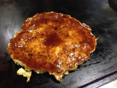 メニュー数が多く、お好み焼きだけでも20種類以上あるのですが、今回はシンプルなブタ玉を注文。お好み焼きはこの地方では珍しい広島風お好み焼き。なお、塩焼きそばも人気らしい。