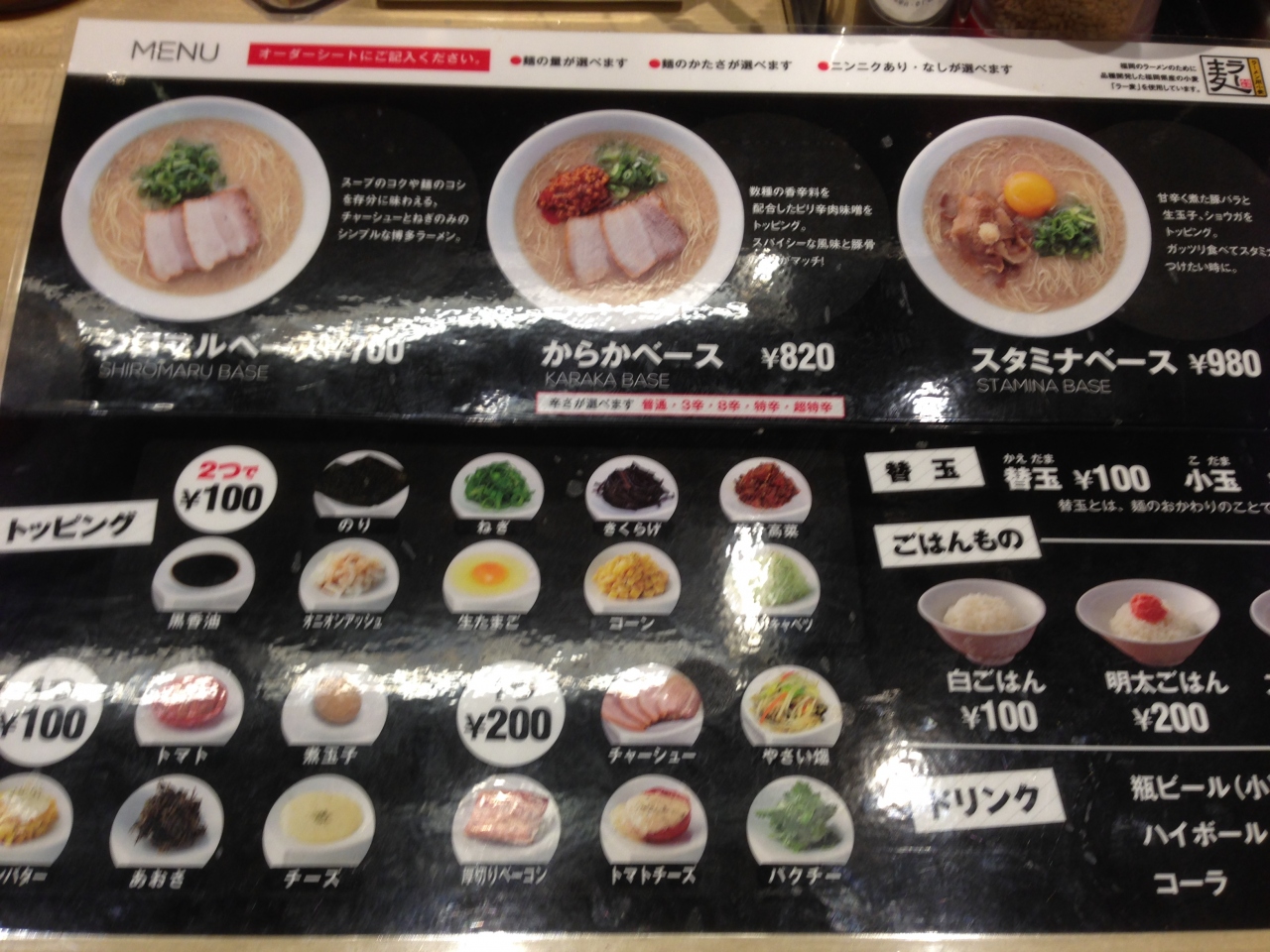 店内に入ると食券の自販機あり。ラーメンベースはスタミナベース、シロマルベース、からかベースの3種類。今回はシロマルベースを選択。