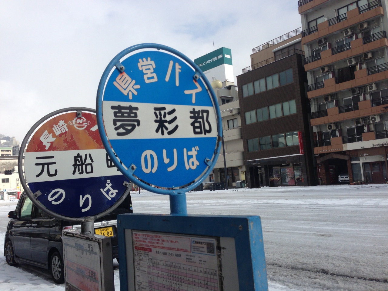 JR長崎駅からは徒歩10分、長崎電気軌道大波止電停から2分くらいのところにあります(長崎県営バスには「夢彩都」のバス停がある。