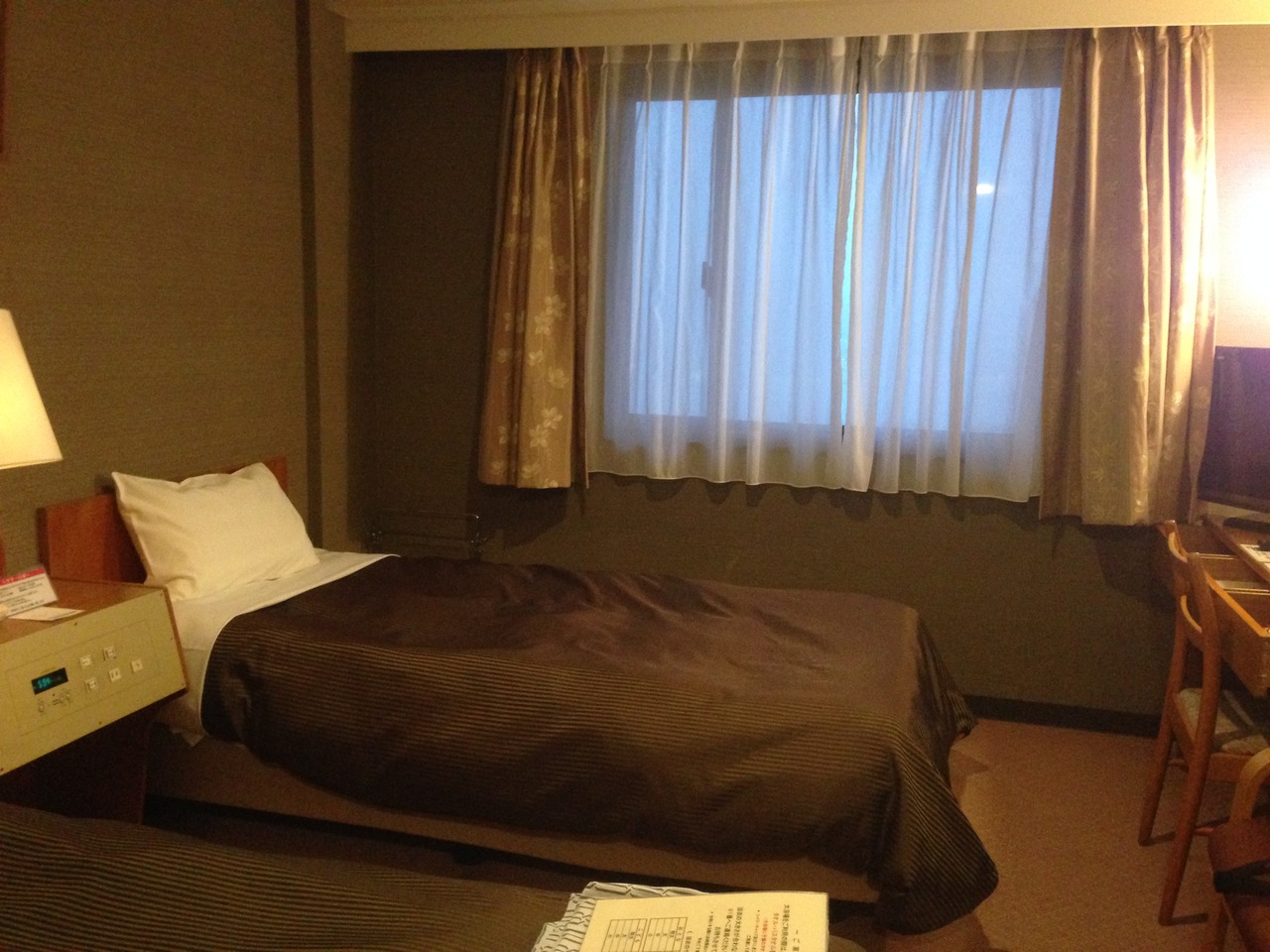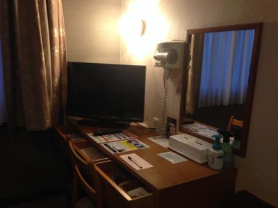 部屋は少々古目。ただしWiFiは問題なし、ビジネスでも大丈夫そう。また温かいお湯は大きめのポットに入っているし、冷蔵庫にはミネラルウォーターが完備されてました(ポットに入っているが)。