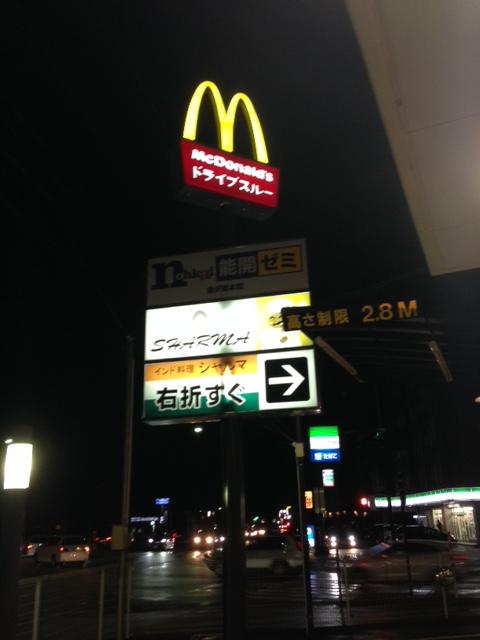 金沢市の郊外、山側環状沿いにあるマック。24時間営業。