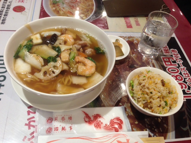 ランチメニューを頼みましたが、五目そばと炒飯のセットで999円(税込み)。高級中華ではありませんが、駅の中の店としては合格点。